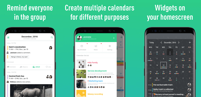 Додаток TimeTree створено з однією метою — спростити обмін інформацією про зустрічі між користувачами. В ньому можна створювати календарі для певних цілей: особистих, сімейних, друзів, роботи. Після цього можна запросити інших людей і поділитися з ними складеним розкладом, щоб узгодити подальші дії. Для кожного календаря є навіть чат-кімнати та передбачений доступ для людей, які не використовують TimeTree.