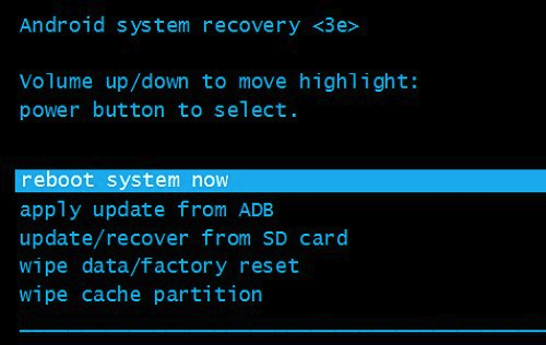 - reboot system now — перезавантажить пристрій в звичайному режимі.