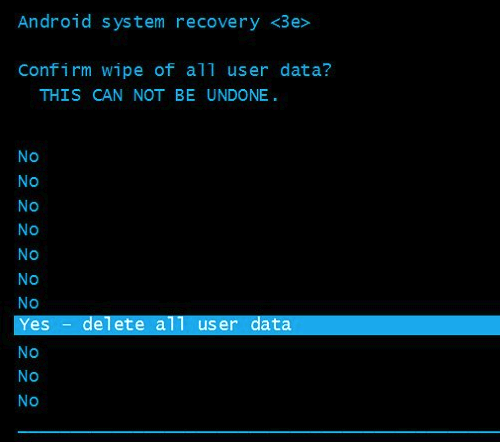Система запитає, чи ви справді бажаєте видалити усі дані — виберіть «Yes» за допомогою кнопок гучності.