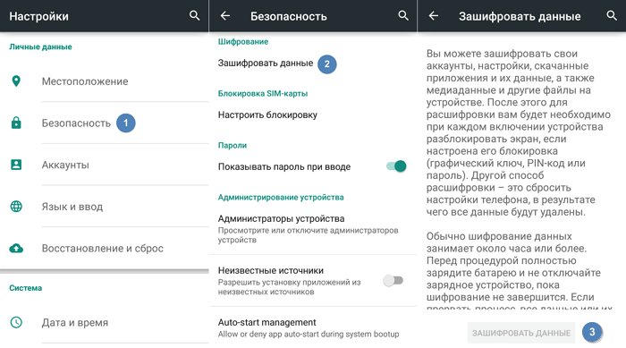 Перший варіант — зашифрувати дані. Цей функціонал вже вбудований в Android і вимагає введення PIN-коду або пароля при кожній розблокування екрана. Будь-якій людині, хто спробує відновити дані з вашого телефону, знадобиться спеціальний ключ для розшифровки, якого у нього немає.