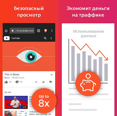 Brave — один із самих нових браузерів для Android. Він з'явився в 2016 році і відрізняється багатим функціоналом. В ньому є вбудований блокувальник реклами. Крім блокування реклами можна налаштувати блокування сторонніх cookies і скриптів. Повною мірою підтримується встановлення безпечних з'єднань по протоколу HTTPS.