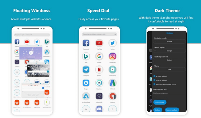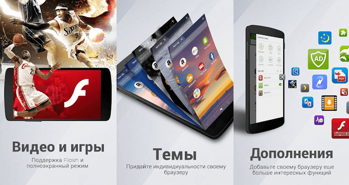 Браузер Dolphin встиг завоювати популярність серед користувачів Android, тому що відрізняється пристойним набором функцій. Підтримуються теми, flash, блокування рекламних оголошень, режим інкогніто і деякі третьорядні функції, на зразок управління за допомогою жестів.