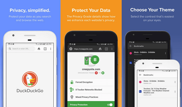 Головне завдання DuckDuckGo Browser — забезпечити вашу конфіденційність і інформувати вас про те, наскільки безпечним є певний веб-сайт. Оцінка заснована на декількох методах аналізу: наявності шифрування HTTPS, спливаючих оголошень і наявність трекерів. Ця інформація відображається поряд з адресним рядком.
