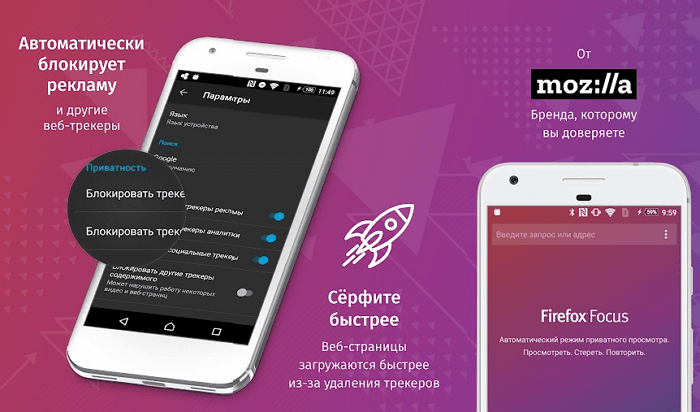 Головне завдання Firefox Focus— забезпечити максимальну конфіденційність користувача. Ось чому тут ви не знайдете історії відвідувань, вкладок, списку найбільш відвідуваних веб-сайтів або схожих функцій, доступних в більшості сучасних браузерів.