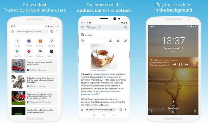 Kiwi Browser має нічний режим, оптимізований для OLED-дисплеїв, нижню адресний рядок, захист від фонового майнінгу кріптовалюти і ряд інших корисних функцій.