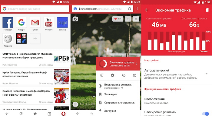 Так само він підтримує доповнення з магазину розширень Opera. Хоча саме ця особливість потребує доопрацювання, так як далеко не всі доповнення сумісні. Є вбудований блокувальник реклами (Adguard). Реклами досить мало (вона присутня лише в стрічці новин) у порівнянні з іншими браузерами, на зразок того ж UC (який буквально закидає вас рекламними повідомленнями на домашньому екрані). Ну і нарешті, цей браузер має турбо режимом, який буде вкрай корисним для користувачів з повільною швидкістю інтернету, т. к. стискає картинки на сайтах (без втрати якості) для їх більш швидкого завантаження.