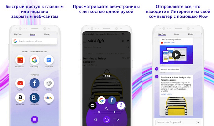 В Opera Touch також є кілька інших корисних інструментів. Наприклад, My Flow дозволяє швидко обмінюватися контентом між Opera на ПК і в смартфоні, а спеціальна опція блокує небажані веб-сайти, які використовують ресурси для майнінг криптовалют у фоновому режимі.