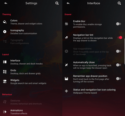 На відміну від більшості типових лаунчер, Niagara Launcher не може похвалитися купою налаштувань. Проте натомість він пропонує мінімалістичний інтерфейс.