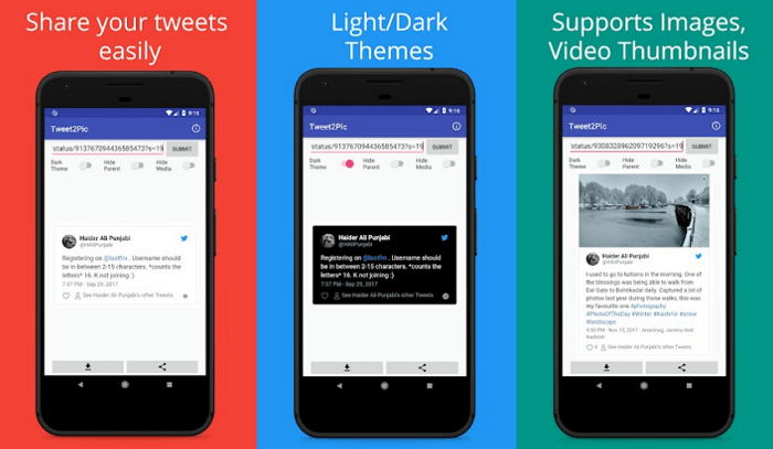Tweet2Pic — ідеальний варіант для тих, хто любить робити скріншоти відправлених твітів. Програма конвертує твіти в маленькі зображення (у форматі PNG), якими ви можете ділитися в Instagram і Facebook.
