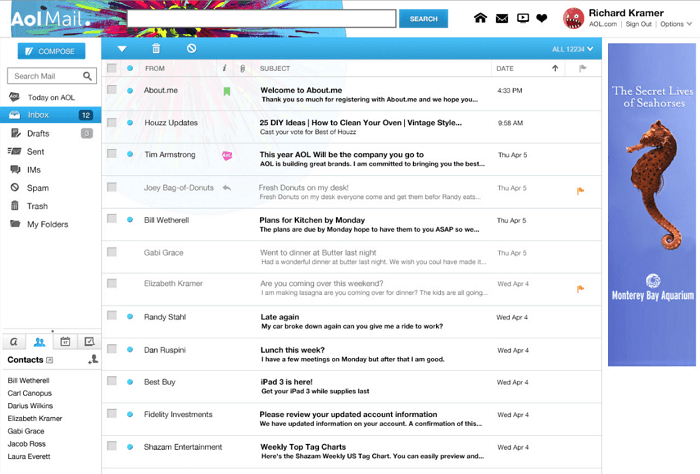 AOL Mail – це безкоштовний веб-сервіс від компанії AOL, відмінними сторонами якого є безлімітне сховище, унікальна захист від спаму і інтуїтивно-зрозумілий веб-інтерфейс.
