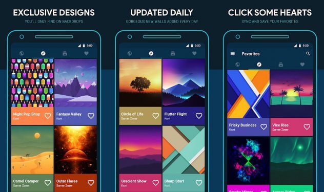 У колекції Backdrops можна відшукати унікальні зображення, які не запропонує більше жодна програма. Окремо представлений розділ Explore, в якій регулярно додаються шпалери з оригінальним дизайном. Є можливість зберегти шпалери, які потрібно переглянути пізніше, в окремому розділі. Після реєстрації можна завантажувати свої власні зображення. Всі вони проходять ретельний відбір, після чого кращі потрапляють в каталог.