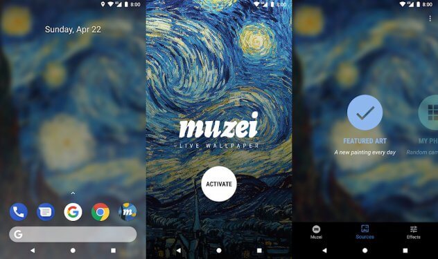 У власній колекції Muzei зберігаються багато відомі твори мистецтва. Картини Ван Гога, Рубенса та Айвазовського можуть стати фоном для вашого смартфона.