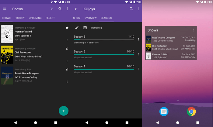 Синхронізація з обліковим записом Google+ є тільки в платній версії. Незважаючи на наявність фільтрів, пошук працює повільно і не завжди коректно. На сторінці з серіалом можна прочитати його детальний опис, дізнатися жанр, ознайомитися з кількістю сезонів і акторами. Зручно те, що біля кожного серіалу вказується дата виходу наступної серії.