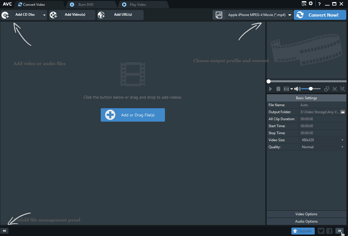 Any Video Converter — ще один зручний відеоконвертер для Windows і Mac. Просте оформлення робить програму більш зрозумілою для користувача, ніж ряд інших варіантів з нашого списку.