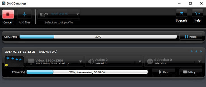 DivX Converter містить величезну кількість корисних налаштувань для вихідних і кінцевих файлів, а також великий інструментарій для редагування. Хоча програма трохи наполегливо намагається переконати вас в необхідності преміум-версії, безкоштовний варіант працює досить добре. Інтерфейс простий і надає багато можливостей для редагування.